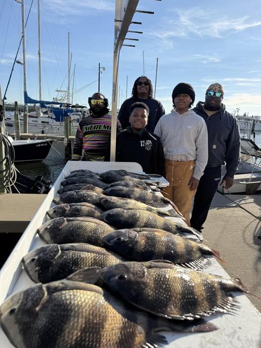 The first half of the day was super slow but then the bite turned on in the last hour and a half of the day! We went from no fish in the box to 16 sheepshead, a black drum, and a flounder on ice plus we threw back a short redfish, 4ish short sheepshead, and a couple white trout! They had to grind it out today but we ended up making plenty of memories, having good laughs, and taking home dinner. A great group of guys to spend my first day of 2026 with! The memories made with your kids fishing will last a lifetime. Don’t miss your chance to make those memories while they’re still young. Hit me up!